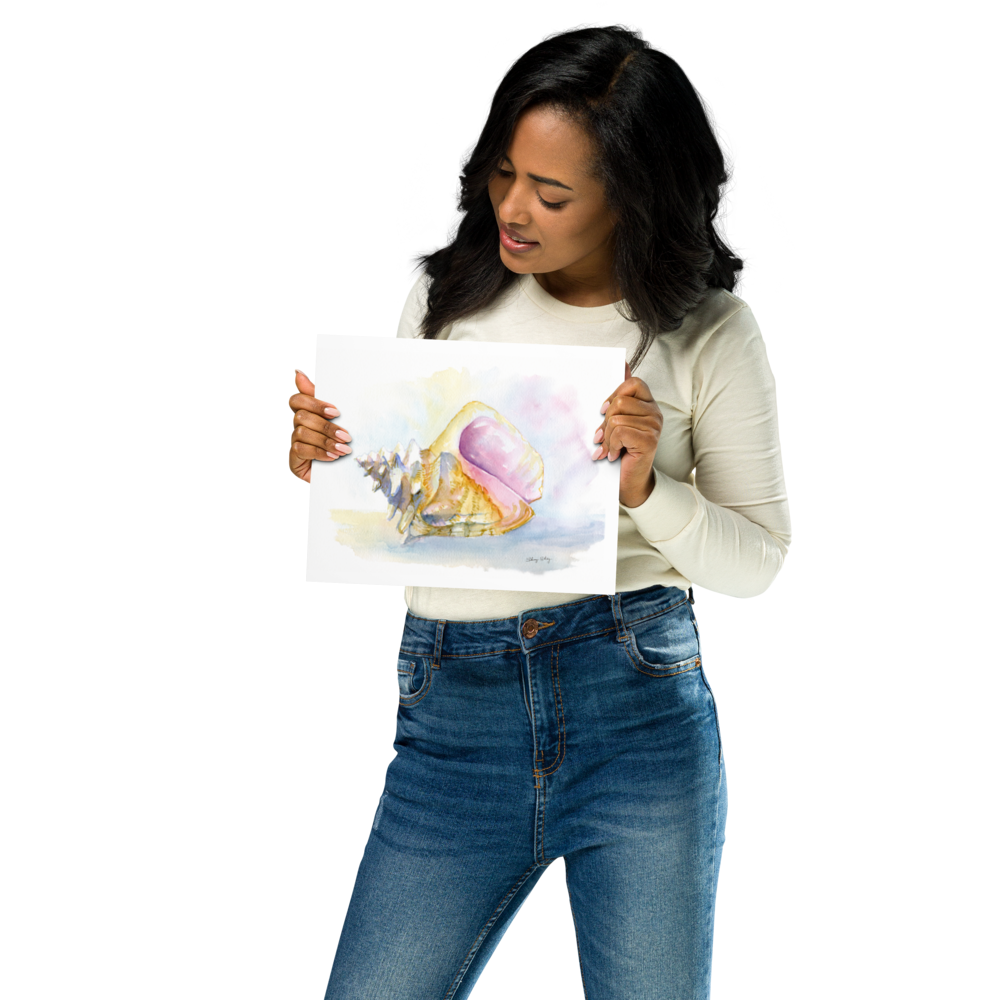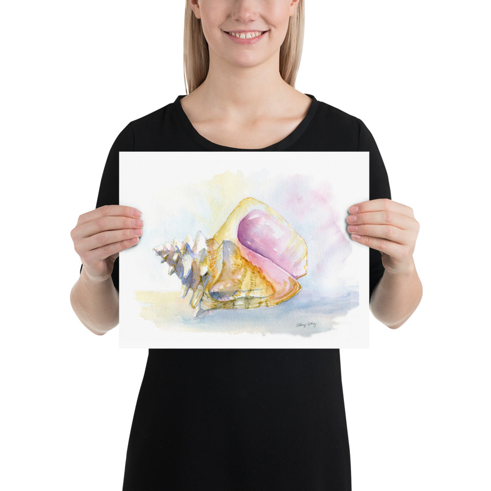 For framed prints please visit https://flamingoshores.com/products/conch-shell-watercolor-print-queen-conch