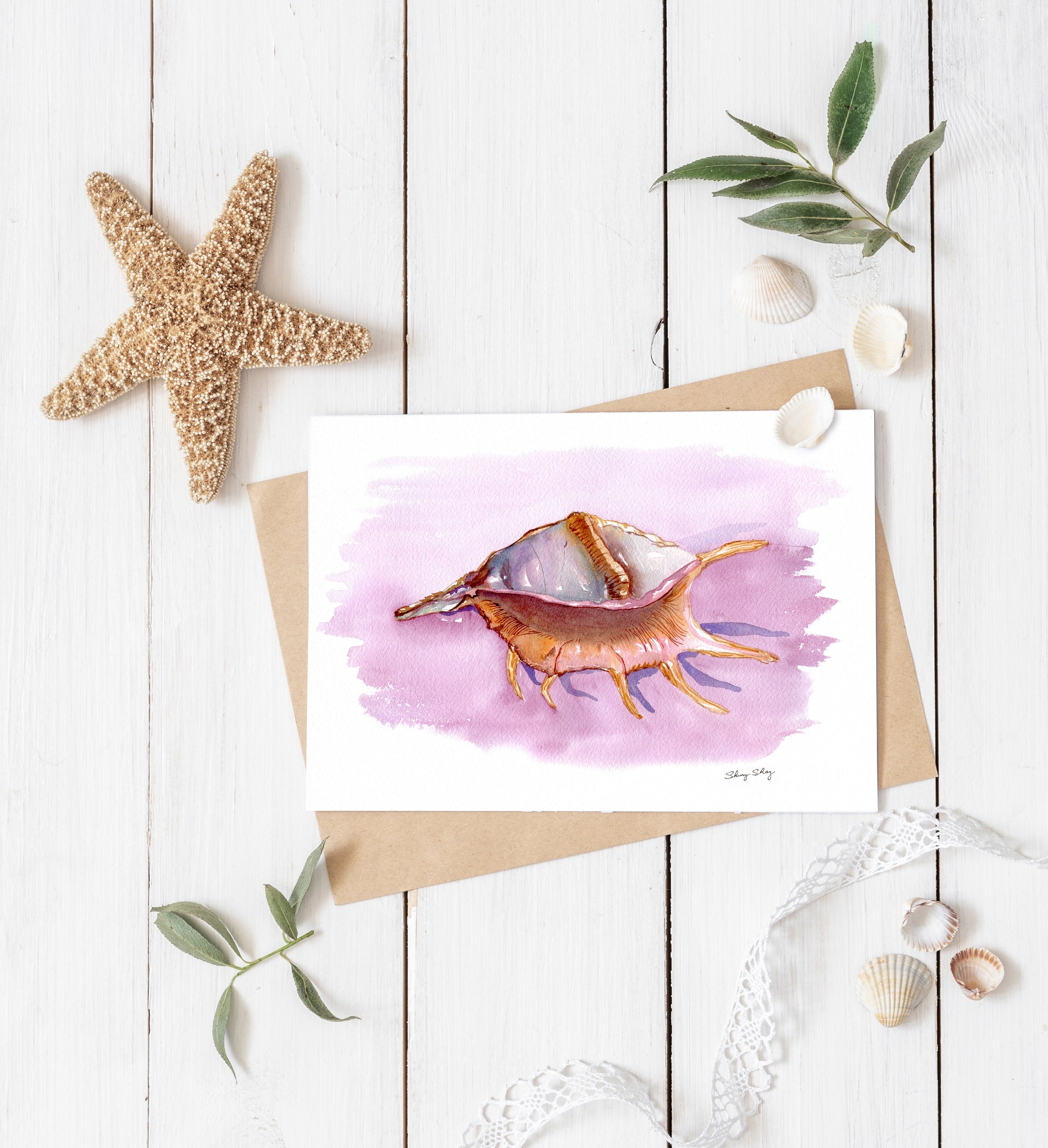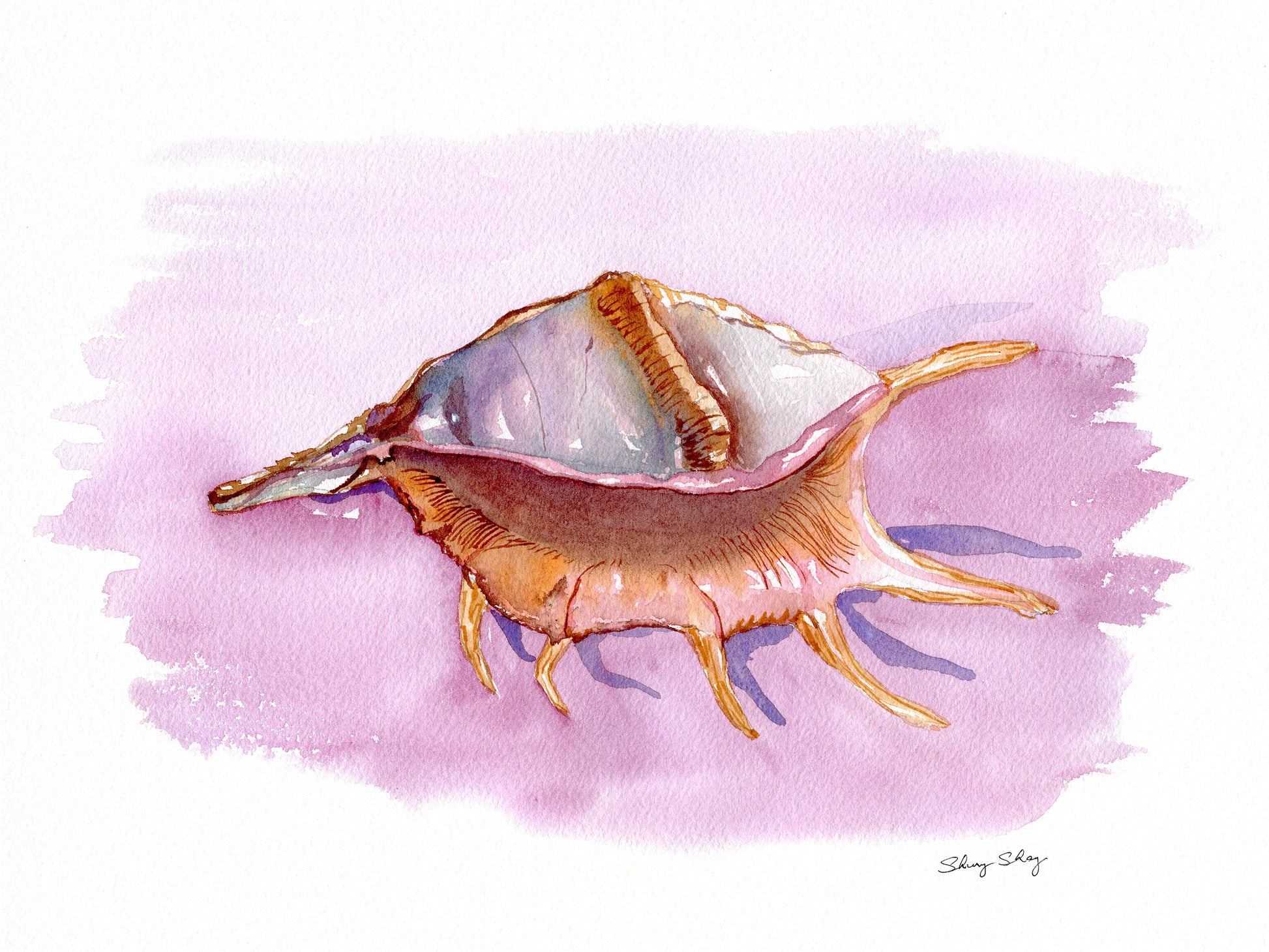 Conch Shell Watercolor Print - Spider Conch